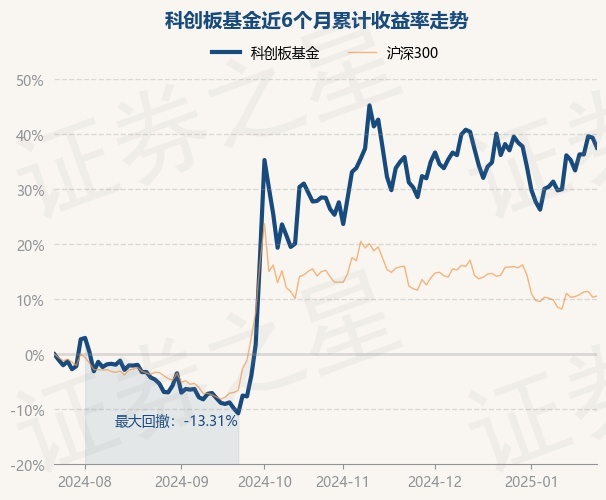 证券之星消息,1月23日,科创板基金最新单位净值为0.8009元,累计净值为0.8359元,较前一交易日下跌1.31%。历史数据显示该基金近1个月上涨0.98%,近3个月上涨7.66%,近6个月上涨37.56%,近1年上涨40.51%。该基金近6个月的累计收益率走势如下图: