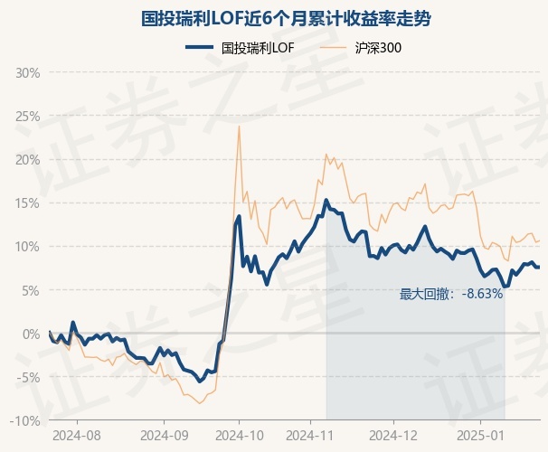 证券之星消息,1月23日,国投瑞利LOF最新单位净值为2.3344元,累计净值为2.3664元,较前一交易日上涨0.0%。历史数据显示该基金近1个月下跌0.96%,近3个月下跌1.46%,近6个月上涨7.43%,近1年上涨8.48%。该基金近6个月的累计收益率走势如下图:
