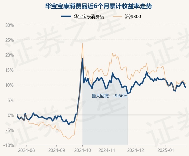 证券之星消息,1月23日,华宝宝康消费品最新单位净值为2.9928元,累计净值为8.8094元,较前一交易日下跌0.35%。历史数据显示该基金近1个月下跌2.2%,近3个月下跌2.9%,近6个月上涨9.04%,近1年上涨1.17%。该基金近6个月的累计收益率走势如下图: