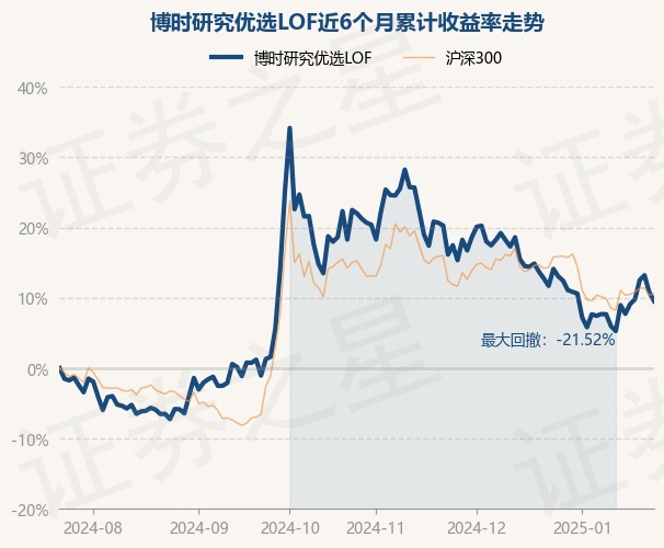 证券之星消息,1月23日,博时研究优选LOF最新单位净值为0.7113元,累计净值为0.7443元,较前一交易日下跌1.13%。历史数据显示该基金近1个月下跌1.94%,近3个月下跌10.46%,近6个月上涨9.53%,近1年上涨14.36%。该基金近6个月的累计收益率走势如下图: