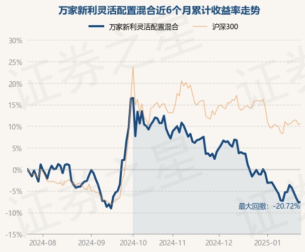 证券之星消息,1月23日,万家新利灵活配置混合最新单位净值为1.7302元,累计净值为2.0928元,较前一交易日上涨0.0%。历史数据显示该基金近1个月下跌5.65%,近3个月下跌17.02%,近6个月下跌7.22%,近1年下跌6.01%。该基金近6个月的累计收益率走势如下图: