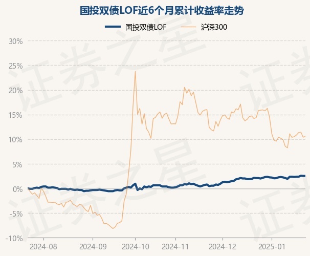 证券之星消息,1月23日,国投双债LOF最新单位净值为1.2899元,累计净值为1.9739元,较前一交易日上涨0.0%。历史数据显示该基金近1个月上涨0.34%,近3个月上涨1.81%,近6个月上涨2.45%,近1年上涨6.25%。该基金近6个月的累计收益率走势如下图: