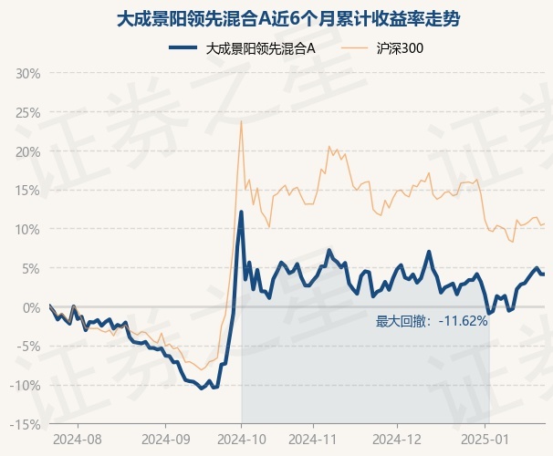 证券之星消息,1月23日,大成景阳领先混合A最新单位净值为0.7081元,累计净值为4.6786元,较前一交易日下跌0.01%。历史数据显示该基金近1个月上涨2.53%,近3个月下跌0.99%,近6个月上涨4.12%,近1年上涨11.51%。该基金近6个月的累计收益率走势如下图: