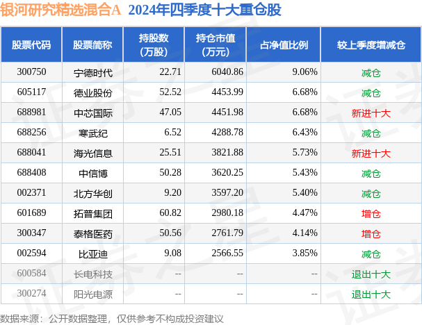 银河研究精选混合A为混合型-偏股基金,根据最新一期基金季报显示,该基金资产配置:股票占净值比89.27%,无债券类资产,现金占净值比11.1%。基金十大重仓股如下:
