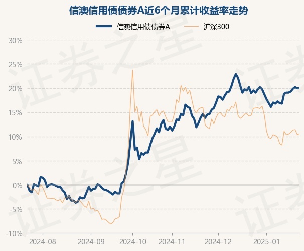 证券之星消息,1月23日,信澳信用债债券A最新单位净值为1.059元,累计净值为1.581元,较前一交易日上涨0.0%。历史数据显示该基金近1个月上涨0.95%,近3个月上涨7.51%,近6个月上涨20.07%,近1年上涨12.9%。该基金近6个月的累计收益率走势如下图: