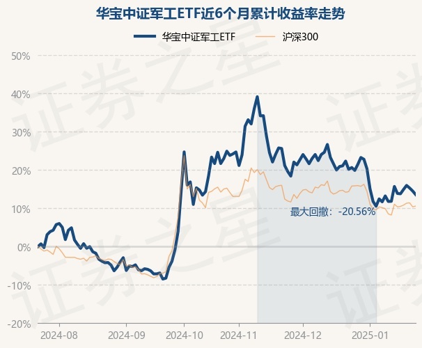 证券之星消息,1月23日,华宝中证军工ETF最新单位净值为1.133元,累计净值为1.133元,较前一交易日下跌0.82%。历史数据显示该基金近1个月下跌5.49%,近3个月下跌8.88%,近6个月上涨13.57%,近1年上涨23.93%。该基金近6个月的累计收益率走势如下图: