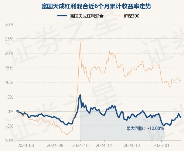 证券之星消息,1月23日,富国天成红利混合最新单位净值为0.8402元,累计净值为2.9062元,较前一交易日下跌0.52%。历史数据显示该基金近1个月下跌0.01%,近3个月下跌3.46%,近6个月下跌2.26%,近1年上涨0.44%。该基金近6个月的累计收益率走势如下图:
