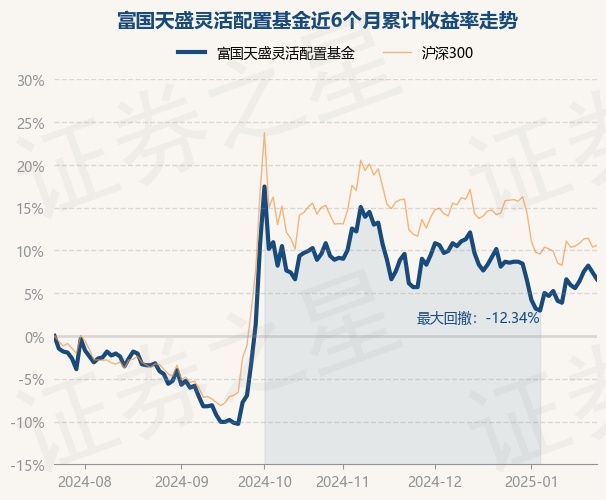 证券之星消息,1月23日,富国天盛灵活配置基金最新单位净值为0.934元,累计净值为2.457元,较前一交易日下跌0.74%。历史数据显示该基金近1个月下跌1.37%,近3个月下跌3.31%,近6个月上涨6.62%,近1年上涨6.5%。该基金近6个月的累计收益率走势如下图: