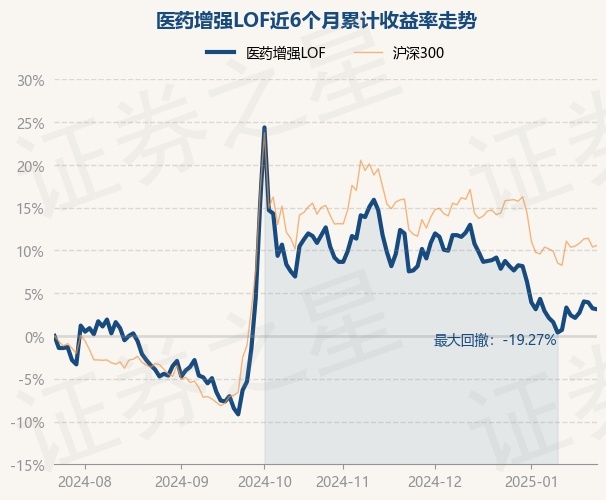 证券之星消息,1月23日,医药增强LOF最新单位净值为1.024元,累计净值为1.213元,较前一交易日下跌0.1%。历史数据显示该基金近1个月下跌4.39%,近3个月下跌7.66%,近6个月上涨3.12%,近1年下跌5.8%。该基金近6个月的累计收益率走势如下图: