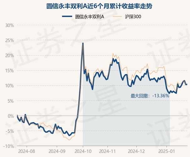 证券之星消息,1月23日,圆信永丰双利A最新单位净值为0.7869元,累计净值为2.5629元,较前一交易日上涨0.01%。历史数据显示该基金近1个月下跌0.74%,近3个月下跌3.39%,近6个月上涨10.3%,近1年上涨15.55%。该基金近6个月的累计收益率走势如下图:
