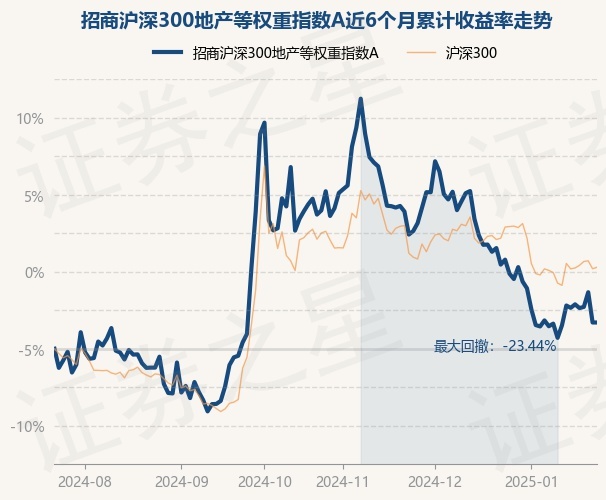 证券之星消息,1月23日,招商沪深300地产等权重指数A最新单位净值为0.3475元,累计净值为1.1507元,较前一交易日上涨0.0%。历史数据显示该基金近1个月下跌5.36%,近3个月下跌12.14%,近6个月上涨4.98%,近1年下跌6.69%。该基金近6个月的累计收益率走势如下图:
