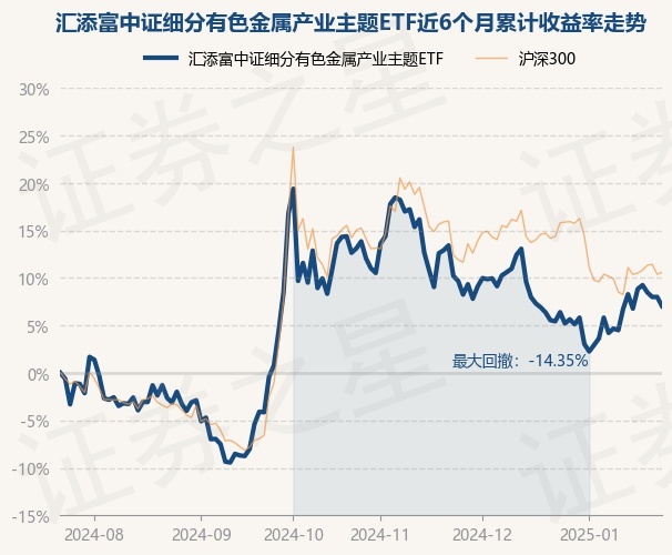 证券之星消息,1月23日,汇添富中证细分有色金属产业主题ETF最新单位净值为0.8828元,累计净值为0.8828元,较前一交易日下跌0.89%。历史数据显示该基金近1个月上涨1.53%,近3个月下跌6.41%,近6个月上涨7.04%,近1年上涨21.97%。该基金近6个月的累计收益率走势如下图: