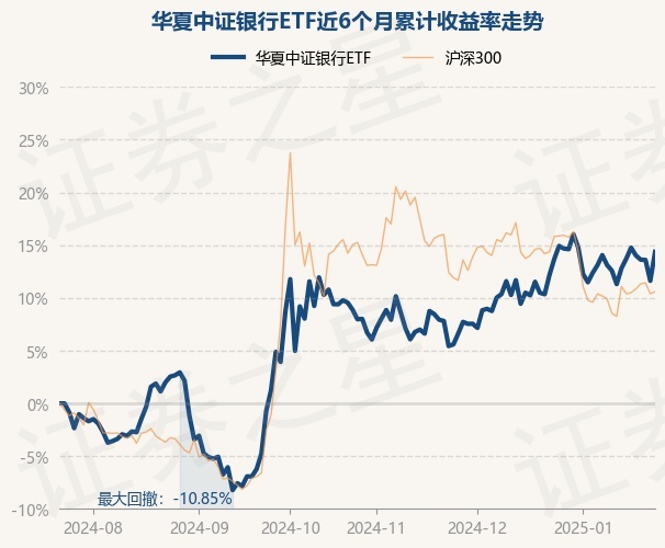 证券之星消息,1月23日,华夏中证银行ETF最新单位净值为1.561元,累计净值为1.561元,较前一交易日上涨2.45%。历史数据显示该基金近1个月上涨1.95%,近3个月上涨4.17%,近6个月上涨14.36%,近1年上涨38.87%。该基金近6个月的累计收益率走势如下图: