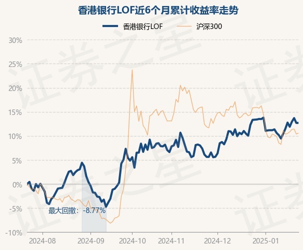 证券之星消息,1月23日,香港银行LOF最新单位净值为1.3469元,累计净值为1.3969元,较前一交易日上涨0.0%。历史数据显示该基金近1个月上涨1.74%,近3个月上涨5.4%,近6个月上涨14.23%,近1年上涨41.44%。该基金近6个月的累计收益率走势如下图: