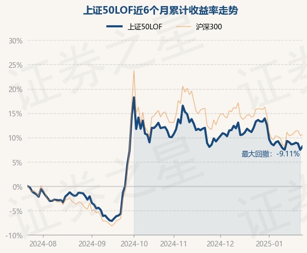 证券之星消息,1月23日,上证50LOF最新单位净值为1.0464元,累计净值为1.0707元,较前一交易日上涨0.63%。历史数据显示该基金近1个月下跌3.45%,近3个月下跌4.31%,近6个月上涨8.16%,近1年上涨18.04%。该基金近6个月的累计收益率走势如下图: