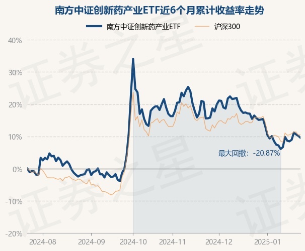 证券之星消息,1月23日,南方中证创新药产业ETF最新单位净值为0.5302元,累计净值为0.5302元,较前一交易日下跌0.54%。历史数据显示该基金近1个月下跌5.08%,近3个月下跌8.19%,近6个月上涨9.59%,近1年下跌5.34%。该基金近6个月的累计收益率走势如下图: