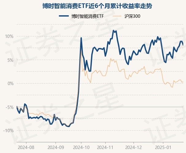 证券之星消息,1月23日,博时智能消费ETF最新单位净值为0.8681元,累计净值为0.8681元,较前一交易日下跌1.15%。历史数据显示该基金近1个月上涨0.01%,近3个月上涨1.47%,近6个月上涨26.25%,近1年上涨38.94%。该基金近6个月的累计收益率走势如下图: