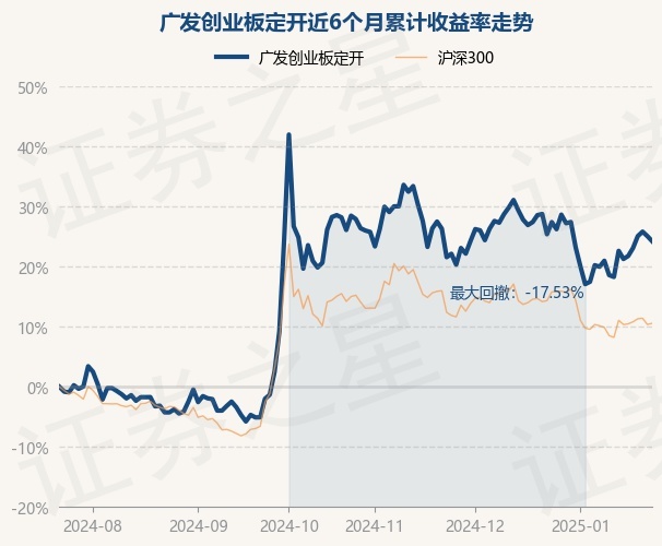 证券之星消息,1月23日,广发创业板定开最新单位净值为0.7895元,累计净值为0.7895元,较前一交易日下跌0.68%。历史数据显示该基金近1个月下跌0.93%,近3个月下跌3.09%,近6个月上涨24.25%,近1年上涨15.88%。该基金近6个月的累计收益率走势如下图: