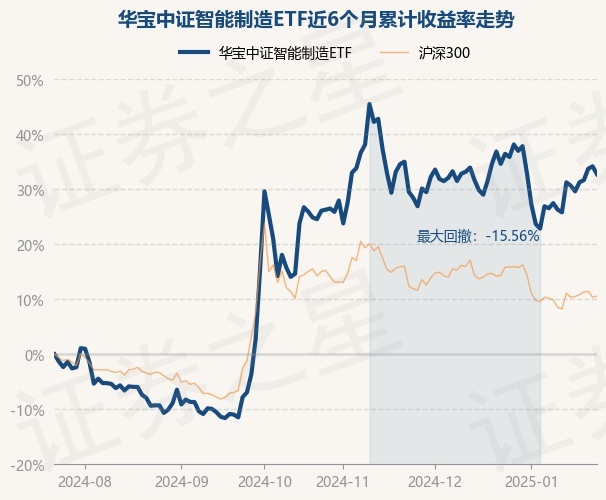 证券之星消息,1月23日,华宝中证智能制造ETF最新单位净值为1.1008元,累计净值为1.1008元,较前一交易日下跌1.07%。历史数据显示该基金近1个月下跌1.4%,近3个月上涨6.3%,近6个月上涨32.74%,近1年上涨41.27%。该基金近6个月的累计收益率走势如下图: