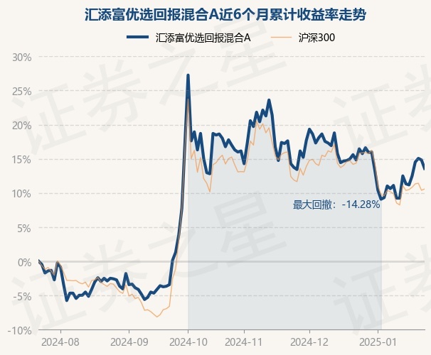 证券之星消息,1月23日,汇添富优选回报混合A最新单位净值为1.463元,累计净值为1.463元,较前一交易日下跌1.08%。历史数据显示该基金近1个月下跌1.08%,近3个月下跌3.75%,近6个月上涨13.59%,近1年上涨16.57%。该基金近6个月的累计收益率走势如下图: