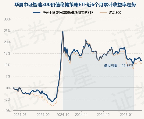 证券之星消息,1月23日,华夏中证智选300价值稳健策略ETF最新单位净值为1.0743元,累计净值为1.0743元,较前一交易日上涨0.0%。历史数据显示该基金近1个月下跌2.88%,近3个月下跌3.88%,近6个月上涨12.23%,近1年上涨26.34%。该基金近6个月的累计收益率走势如下图: