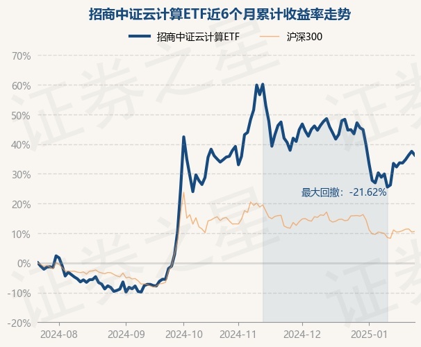 证券之星消息,1月23日,招商中证云计算ETF最新单位净值为1.0864元,累计净值为1.0864元,较前一交易日下跌0.91%。历史数据显示该基金近1个月下跌5.81%,近3个月上涨0.99%,近6个月上涨36.31%,近1年上涨37.41%。该基金近6个月的累计收益率走势如下图: