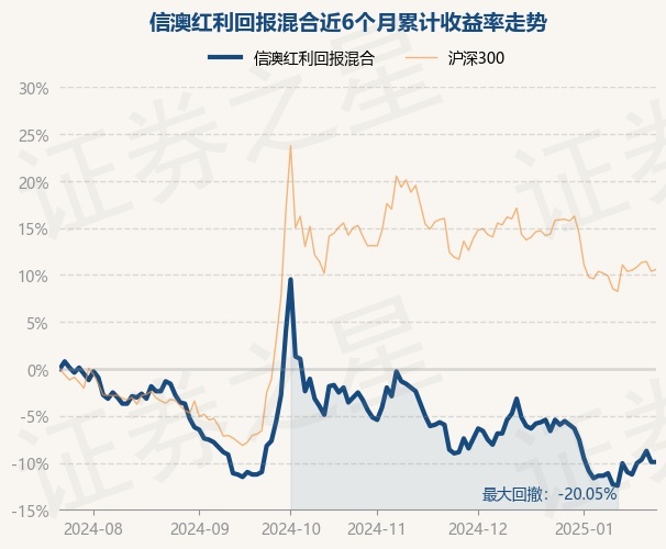 证券之星消息,1月23日,信澳红利回报混合最新单位净值为0.678元,累计净值为1.21元,较前一交易日上涨0.0%。历史数据显示该基金近1个月下跌3.97%,近3个月下跌8.5%,近6个月下跌10.32%,近1年下跌9.72%。该基金近6个月的累计收益率走势如下图: