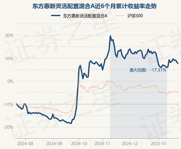 证券之星消息,1月23日,东方惠新灵活配置混合A最新单位净值为0.964元,累计净值为1.1942元,较前一交易日下跌0.78%。历史数据显示该基金近1个月下跌6.64%,近3个月下跌0.02%,近6个月上涨35.18%,近1年上涨54.54%。该基金近6个月的累计收益率走势如下图: