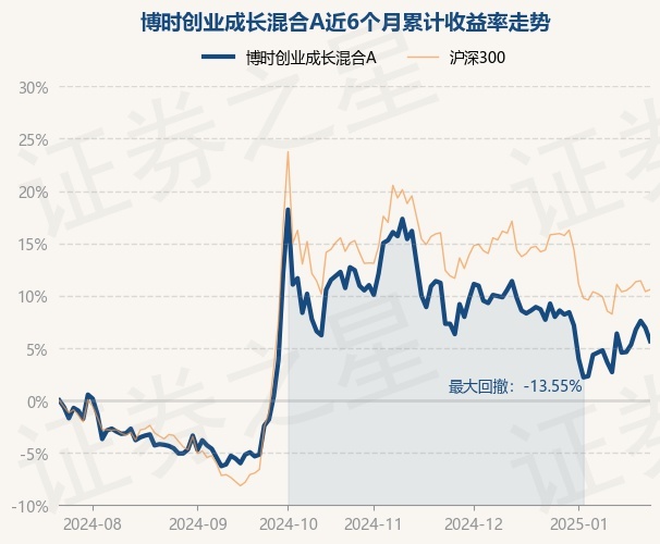 证券之星消息,1月23日,博时创业成长混合A最新单位净值为1.92元,累计净值为1.992元,较前一交易日下跌1.18%。历史数据显示该基金近1个月下跌1.89%,近3个月下跌5.88%,近6个月上涨5.67%,近1年上涨13.14%。该基金近6个月的累计收益率走势如下图: