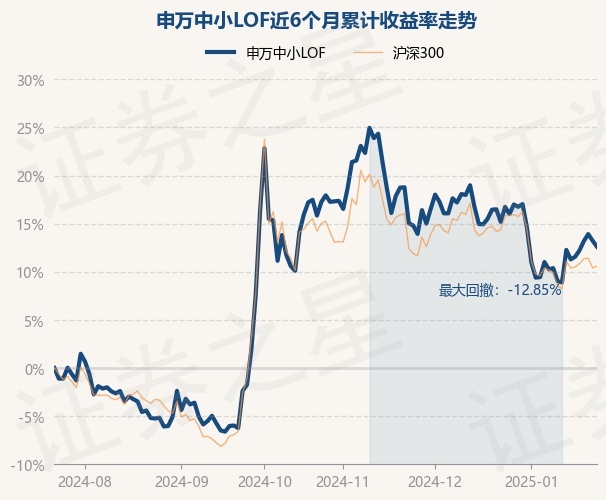 证券之星消息,1月23日,申万中小LOF最新单位净值为1.1125元,累计净值为1.9114元,较前一交易日下跌0.55%。历史数据显示该基金近1个月下跌2.25%,近3个月下跌4.15%,近6个月上涨12.6%,近1年上涨16.32%。该基金近6个月的累计收益率走势如下图: