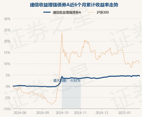 证券之星消息,1月23日,建信收益增强债券A最新单位净值为1.531元,累计净值为1.996元,较前一交易日下跌0.13%。历史数据显示该基金近1个月上涨0.07%,近3个月上涨0.86%,近6个月上涨4.51%,近1年上涨5.95%。该基金近6个月的累计收益率走势如下图: