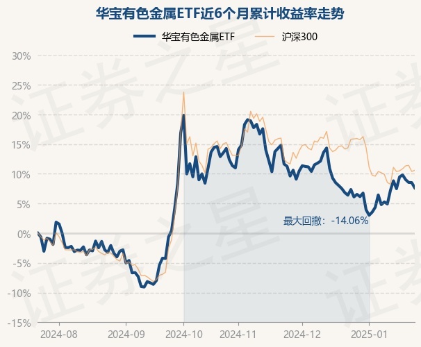 证券之星消息,1月23日,华宝有色金属ETF最新单位净值为1.0721元,累计净值为1.0721元,较前一交易日下跌0.8%。历史数据显示该基金近1个月上涨1.17%,近3个月下跌6.06%,近6个月上涨7.64%,近1年上涨19.76%。该基金近6个月的累计收益率走势如下图: