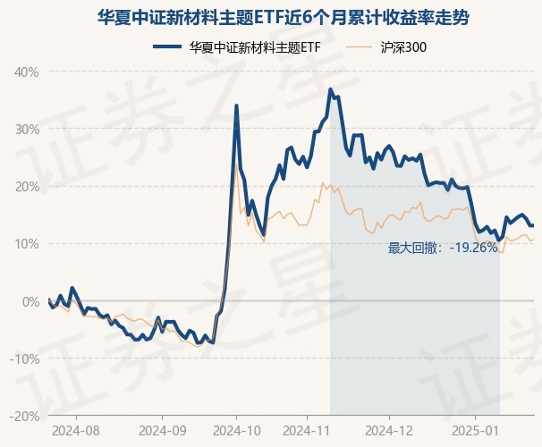证券之星消息,1月23日,华夏中证新材料主题ETF最新单位净值为0.4692元,累计净值为0.4692元,较前一交易日上涨0.0%。历史数据显示该基金近1个月下跌5.59%,近3个月下跌8.89%,近6个月上涨12.57%,近1年上涨5.2%。该基金近6个月的累计收益率走势如下图:
