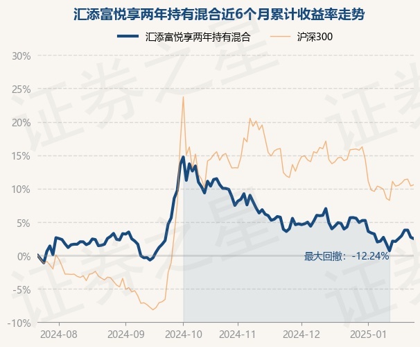 证券之星消息,1月23日,汇添富悦享两年持有混合最新单位净值为0.912元,累计净值为1.212元,较前一交易日下跌0.21%。历史数据显示该基金近1个月下跌1.69%,近3个月下跌8.06%,近6个月上涨2.51%,近1年上涨9.55%。该基金近6个月的累计收益率走势如下图: