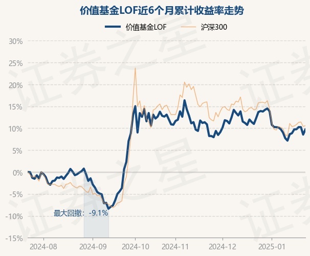 证券之星消息,1月23日,价值基金LOF最新单位净值为1.1044元,累计净值为1.1044元,较前一交易日上涨1.07%。历史数据显示该基金近1个月下跌2.3%,近3个月下跌3.56%,近6个月上涨9.7%,近1年上涨32.11%。该基金近6个月的累计收益率走势如下图: