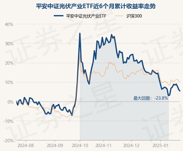 证券之星消息,1月23日,平安中证光伏产业ETF最新单位净值为0.5907元,累计净值为0.5907元,较前一交易日下跌0.51%。历史数据显示该基金近1个月下跌7.66%,近3个月下跌16.5%,近6个月上涨5.37%,近1年下跌17.64%。该基金近6个月的累计收益率走势如下图: