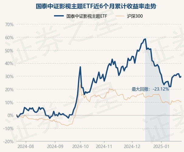 证券之星消息,1月23日,国泰中证影视主题ETF最新单位净值为0.8942元,累计净值为0.8942元,较前一交易日上涨0.49%。历史数据显示该基金近1个月下跌8.62%,近3个月上涨3.51%,近6个月上涨29.73%,近1年上涨7.28%。该基金近6个月的累计收益率走势如下图: