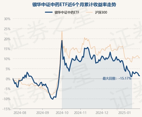 证券之星消息,1月23日,银华中证中药ETF最新单位净值为0.9468元,累计净值为0.9468元,较前一交易日下跌0.17%。历史数据显示该基金近1个月下跌7.23%,近3个月下跌7.5%,近6个月上涨1.38%,近1年下跌2.28%。该基金近6个月的累计收益率走势如下图: