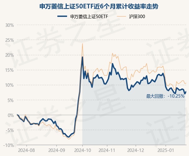 证券之星消息,1月23日,申万菱信上证50ETF最新单位净值为3.2993元,累计净值为1.3443元,较前一交易日上涨0.65%。历史数据显示该基金近1个月下跌3.77%,近3个月下跌4.98%,近6个月上涨7.71%,近1年上涨18.02%。该基金近6个月的累计收益率走势如下图: