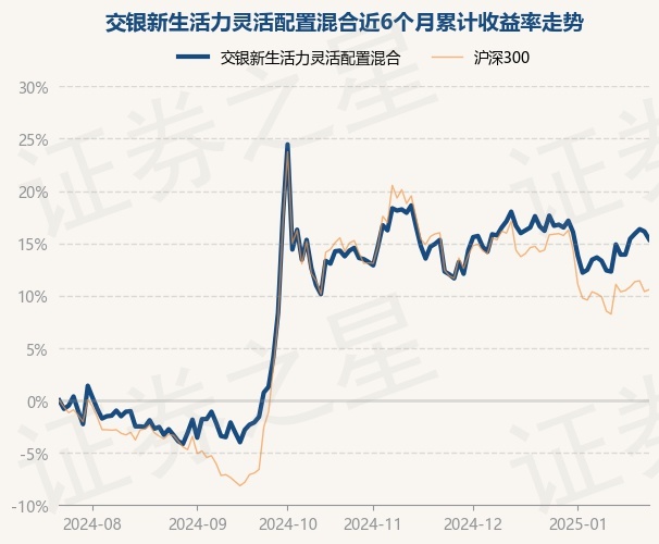 证券之星消息,1月23日,交银新生活力灵活配置混合最新单位净值为2.138元,累计净值为2.138元,较前一交易日下跌0.65%。历史数据显示该基金近1个月下跌0.7%,近3个月上涨0.94%,近6个月上涨15.38%,近1年上涨11.94%。该基金近6个月的累计收益率走势如下图: