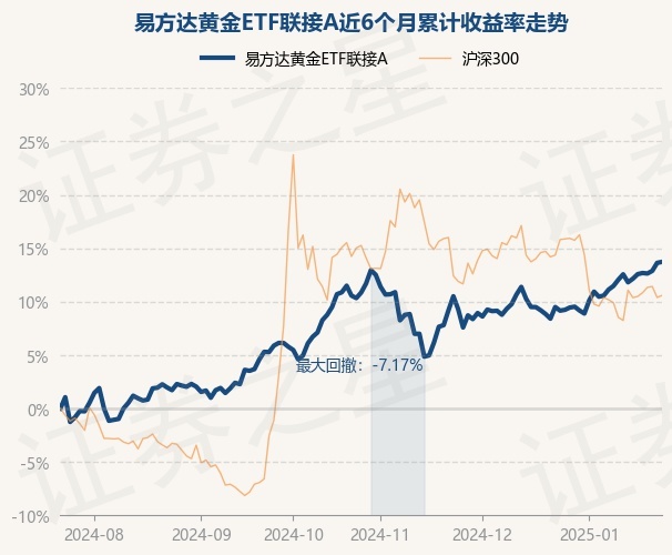 证券之星消息,1月23日,易方达黄金ETF联接A最新单位净值为2.1493元,累计净值为2.1493元,较前一交易日上涨0.08%。历史数据显示该基金近1个月上涨3.86%,近3个月上涨2.0%,近6个月上涨13.73%,近1年上涨32.09%。该基金近6个月的累计收益率走势如下图: