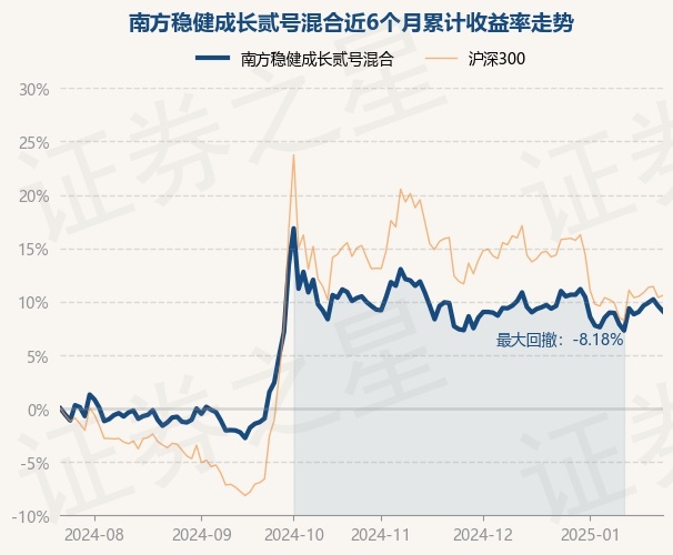 证券之星消息,1月23日,南方稳健成长贰号混合最新单位净值为0.3513元,累计净值为2.8742元,较前一交易日下跌0.45%。历史数据显示该基金近1个月下跌0.45%,近3个月下跌1.62%,近6个月上涨9.1%,近1年上涨11.67%。该基金近6个月的累计收益率走势如下图: