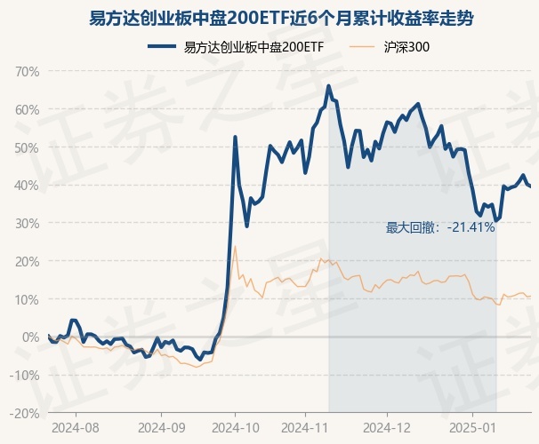 证券之星消息,1月23日,易方达创业板中盘200ETF最新单位净值为1.0974元,累计净值为1.0974元,较前一交易日下跌0.39%。历史数据显示该基金近1个月下跌6.6%,近3个月下跌5.62%,近6个月上涨39.48%,近1年上涨29.18%。该基金近6个月的累计收益率走势如下图: