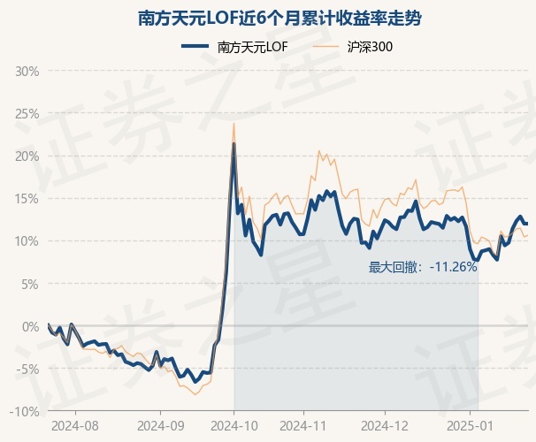 证券之星消息,1月23日,南方天元LOF最新单位净值为3.2123元,累计净值为3.2123元,较前一交易日上涨0.0%。历史数据显示该基金近1个月下跌0.06%,近3个月下跌1.42%,近6个月上涨11.4%,近1年上涨16.18%。该基金近6个月的累计收益率走势如下图: