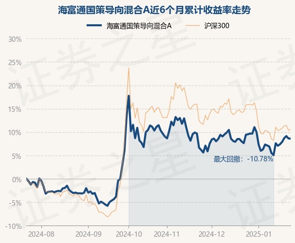 证券之星消息,1月23日,海富通国策导向混合A最新单位净值为1.8314元,累计净值为2.8705元,较前一交易日下跌0.04%。历史数据显示该基金近1个月上涨0.89%,近3个月下跌2.28%,近6个月上涨8.6%,近1年上涨16.43%。该基金近6个月的累计收益率走势如下图: