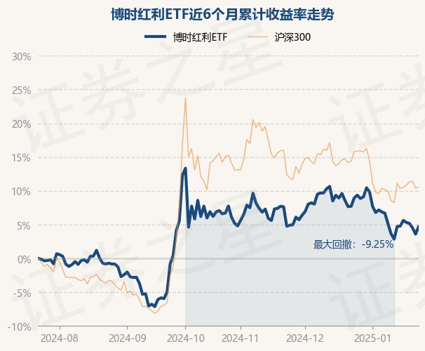 证券之星消息,1月23日,博时红利ETF最新单位净值为1.3363元,累计净值为1.6075元,较前一交易日上涨1.09%。历史数据显示该基金近1个月下跌2.78%,近3个月下跌2.2%,近6个月上涨4.7%,近1年上涨15.27%。该基金近6个月的累计收益率走势如下图: