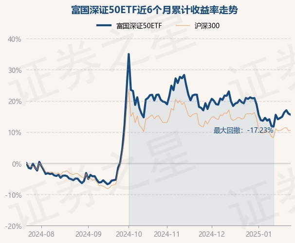证券之星消息,1月23日,富国深证50ETF最新单位净值为1.1423元,累计净值为1.1423元,较前一交易日下跌0.31%。历史数据显示该基金近1个月下跌3.06%,近3个月下跌5.24%,近6个月上涨15.57%,近1年上涨23.07%。该基金近6个月的累计收益率走势如下图: