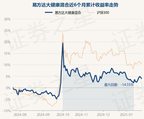 证券之星消息,1月23日,易方达大健康混合最新单位净值为1.758元,累计净值为1.758元,较前一交易日下跌0.45%。历史数据显示该基金近1个月下跌1.51%,近3个月下跌3.25%,近6个月上涨3.9%,近1年上涨2.45%。该基金近6个月的累计收益率走势如下图:
