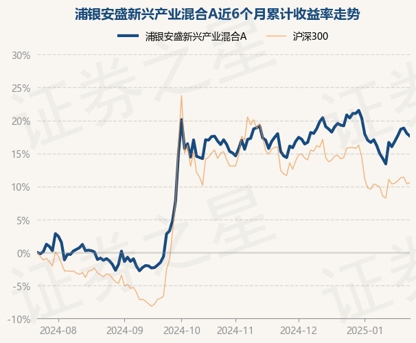 证券之星消息,1月23日,浦银安盛新兴产业混合A最新单位净值为3.4176元,累计净值为3.9176元,较前一交易日下跌0.34%。历史数据显示该基金近1个月下跌1.3%,近3个月上涨0.02%,近6个月上涨17.64%,近1年上涨34.41%。该基金近6个月的累计收益率走势如下图: