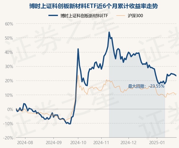 证券之星消息,1月23日,博时上证科创板新材料ETF最新单位净值为0.5512元,累计净值为0.5512元,较前一交易日下跌0.47%。历史数据显示该基金近1个月下跌4.37%,近3个月下跌4.64%,近6个月上涨23.28%,近1年上涨2.21%。该基金近6个月的累计收益率走势如下图: